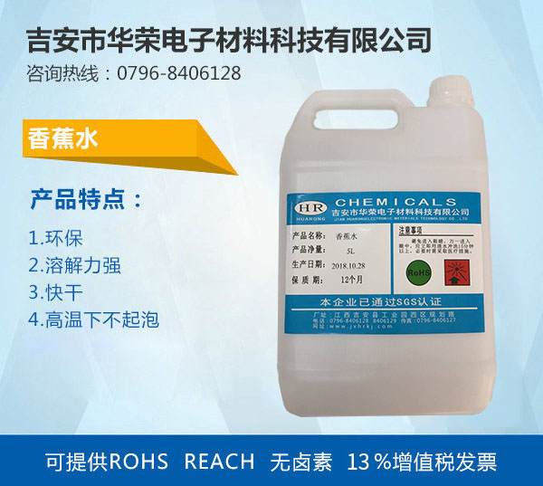 吉安市華榮電子材料科技有限公司是生產:雙氧水、洗網水、清洗劑、無鉛環保、免洗、無鹵助焊劑、稀釋劑、凡立水(絕緣漆)、菲林清潔劑、蠟模清洗劑、洗板水、洗網水、抹機水、香蕉水、天那水、防白水、開油水、工業酒精、無水乙醇、白電油、丁酮、環已酮、丁脂、乙脂、二甲苯、二氯甲烷、甲醇、乙醇、去漬油、三氯乙烯、四氯乙烯、異丙醇、異丁醇、正丁醇、石油醚、783慢干水、凡士林、NMP等溶劑等產品生產加工的有限責任公司(自然人投資或控股),公司總部設在江西吉安,辦事處:深圳、廈門、上海、江蘇,吉安市華榮電子材料科技有限公司擁有完整、科學